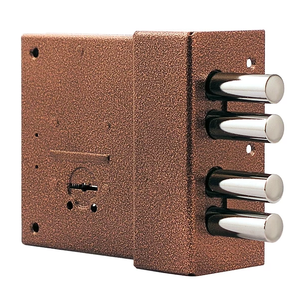 Замок накладной сувальдный ЗН 4-8 М универсальный. 3-ий класс безопасности, 8 сувальд, 250 000 секретных комбинаций. Комплектация: крепежная фурнитура, шестигранная накладка, 5 кл. Цвет: медный антик.