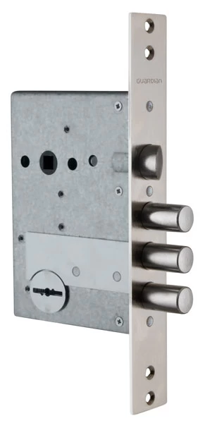 ЗВ 5011 - Замок врезной сувальдный под ручку. Реверсивная защелка, переворот защелки осуществляется без разбора замка. Замок серии Strong Security, 3-ой класс безопасности. Повышенная защита от наиболее распространенных методов вскрытия: защита от самоимпрессии – втулка на корпусе и крышке замка; защита от вскрытия отмычкой – ложные пазы на стойке и сувальдах, увеличенная жесткость пружин сувальд; защита от «свертыша» – ослабленный зуб рейки хвостовика; защита от взлома – при полностью выдвинутых ригелях замка, 30% их длины остается в корпусе замка, усилена конструкция засовов; защита от высверливания – внешняя бронепластина, закаленная стойка рейки хвостовика; защита от вандалов – отсутствует нижняя стенка корпуса замка. Предназначен для установки в металлические двери, шкафы и сейфы.