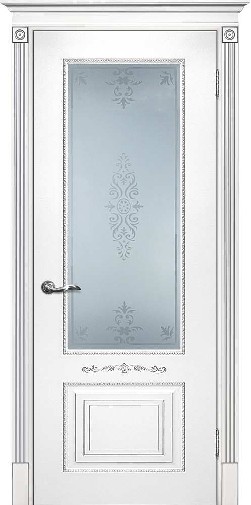 Качественная Межкомнатная дверь Смальта 04 Белый ral 9003 патина серебро продается по цене 25 954 руб. за полотно. Доступные размеры 550x1900, 600x1900, 600x2000, 700x2000, 800x2000, 900x2000. Так же в наличии большой выбор комплектующих к данной модели, подходящих по цвету и фактуре.