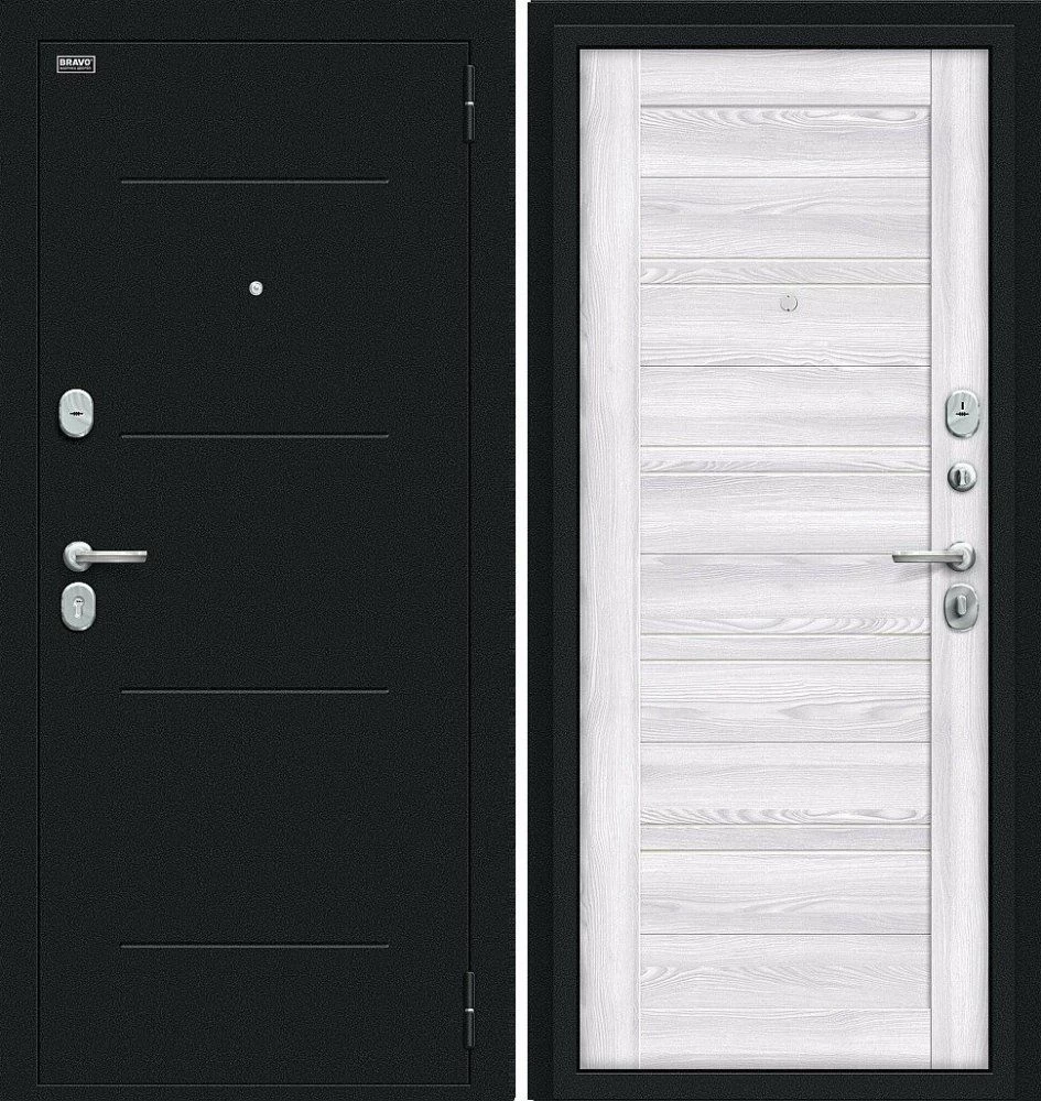 Надежная входная Дверь Браво Сити Kale Букле черное/Riviera Ice премиум класса по цене 34 923 руб. Большая толщина стали защитит от проникновения в ваш дом, квартиру или коттедж. Используется очень качественная фурнитура: замки, цилиндры, ручки, защелки. Покрытие и отделка двери изготовлено под внимательным контролем производителя. Дверь имеет долгий срок службы и гарантию.